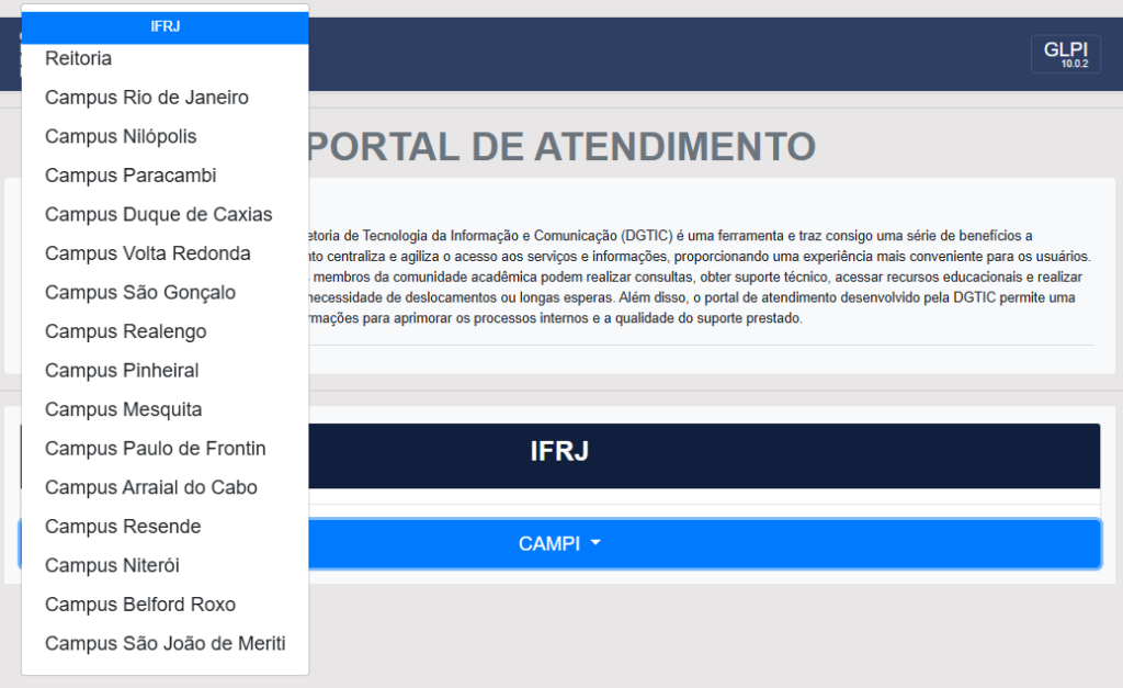 1. Acesse o sistema de chamados através do link https://atendimento.ifrj.edu.br