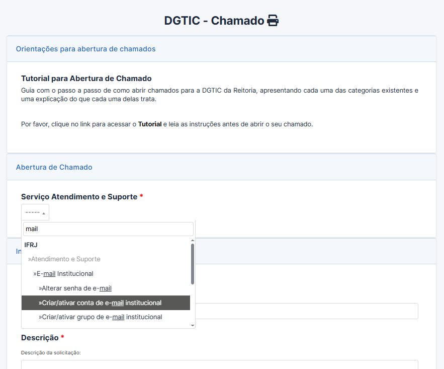 Solicitação de criação/ativação de nova conta de e-mail institucional.